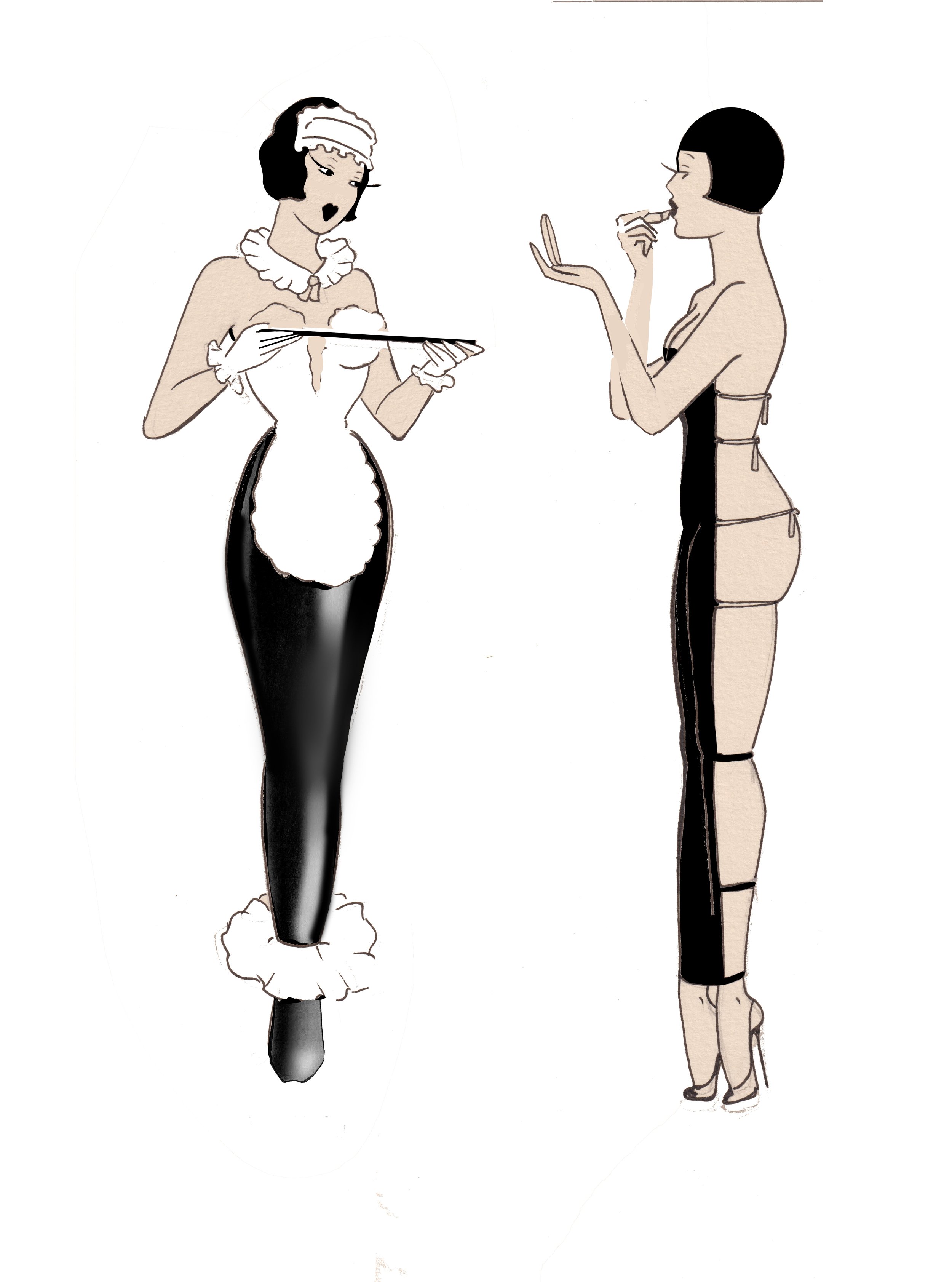 I'm working on this illustration inspired by the 1920s-30s, an era when cinema began exploring the figure of the maid not just as a service character, but as a catalyst for forbidden desires and erotic tensions.