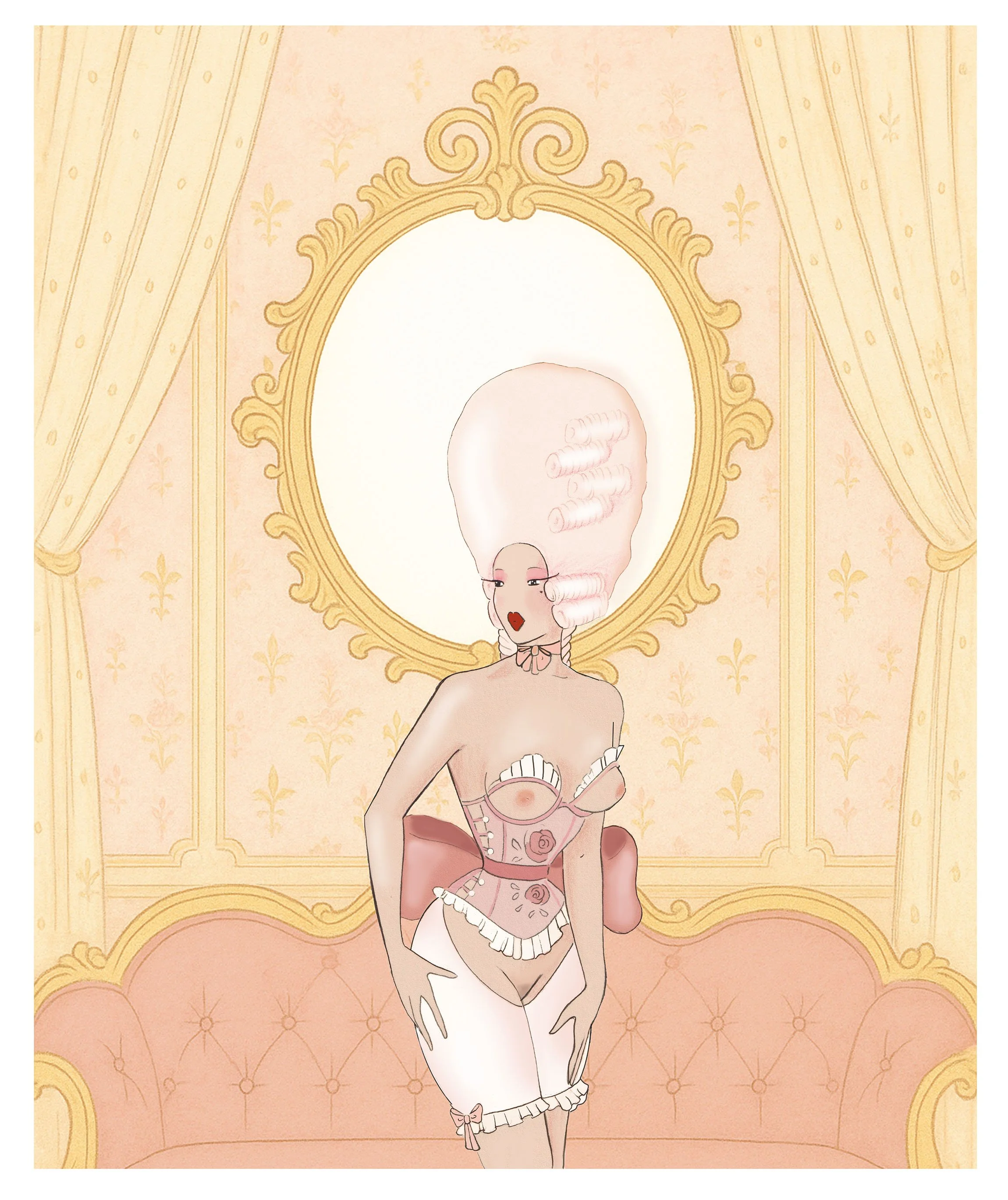 A fingertip resting upon lace cuffs, a ribbon slipping from corseted silk, the deliberate grace of unfastening pearl buttons, each gesture was a playful invitation behind gilded doors.